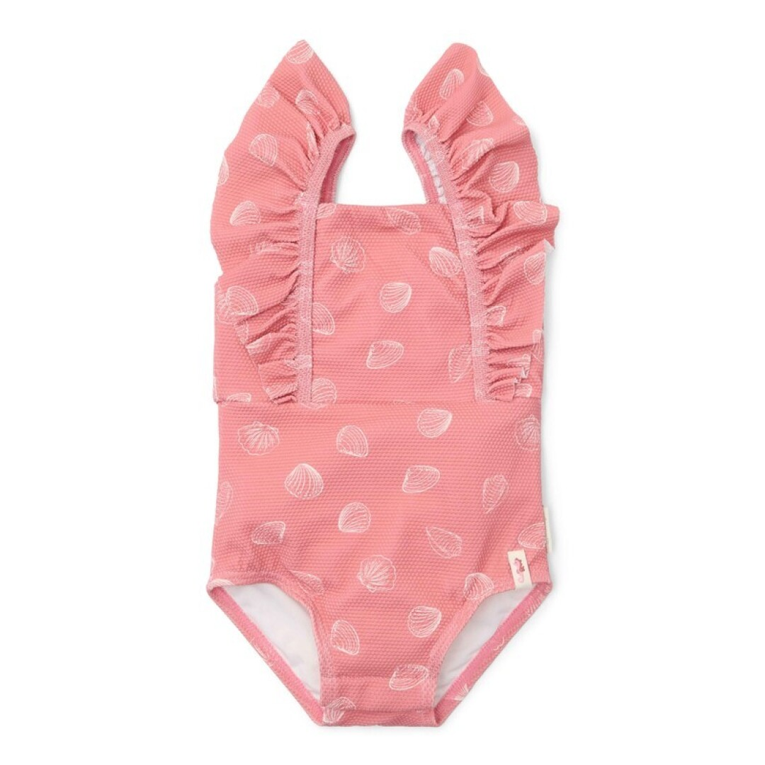 ¡Nos vemos en la playa! Con este precioso traje de baño serás la estrella que brilla en la orilla. Combina el hermoso diseño de Ocean Treasures con gran estilo y delicadeza. A tu pequeña diva le encantará este traje de baño en Lemonade Pink adornado con un divertido estampado de conchas marinas blancas. El ajuste es cómodo y los volantes en las bandas de los hombros le dan un toque sofisticado. El traje de baño, disponible en cuatro tallas, cuenta con prácticos botones a presión en la entrepierna para facilitar los cambios de pañal en las dos tallas más pequeñas, 62/68 y 74/80. Combínalo con un sombrero y zapatos de baño para mayor protección en la playa. No olvides usar siempre lociones de protección solar para proteger a tu pequeño. 94% Nylon reciclado /6% spandex