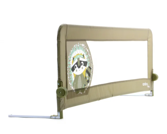 La barandilla de cama Asalvo 2 en 1 con diseño de mapache es ideal para cuando el niño pasa de la cuna a la cama.
