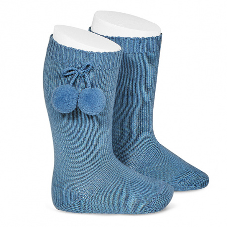 Calcetin alto calido con borlas T0 AZUL FRANCIA 449