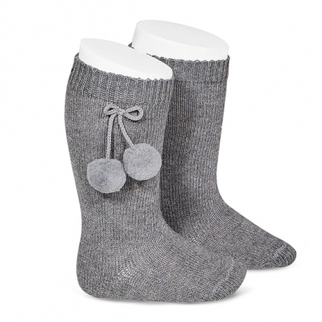 Calcetin alto calido con borlas T00 GRIS CLARO 230
