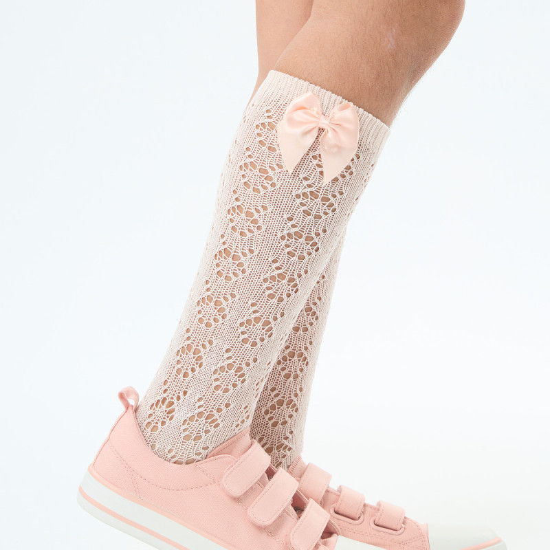 CALCETIN ALTO PERLE CALADO Y LAZO T0 NUDE