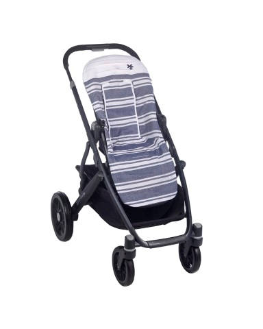 Colchoneta confeccionado en estampado de rayas anchas de estilo marinero.Ideal para sillas estrechas o gemelares. Adorno de colgante en forma de estrella de mar 60% Algodón 30% Lino 10% Poliéster