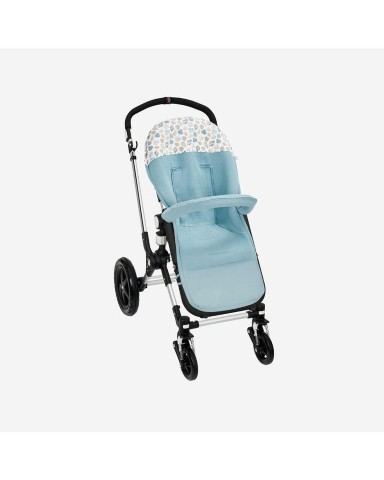 Colchoneta para sillas de paseo fabricada en tejido liso combinado con otomán de algodón estampado. Cubre barra a juego y refuerzo pies de polipiel. 100% Algodón