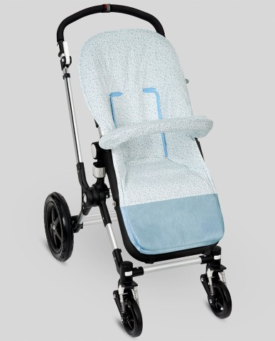Colchoneta para sillas de paseo confeccionada en tejido otomán de algodón con estampado floral. Cubre barra a juego y refuerzo de polipiel en los pies. 100% Algodón