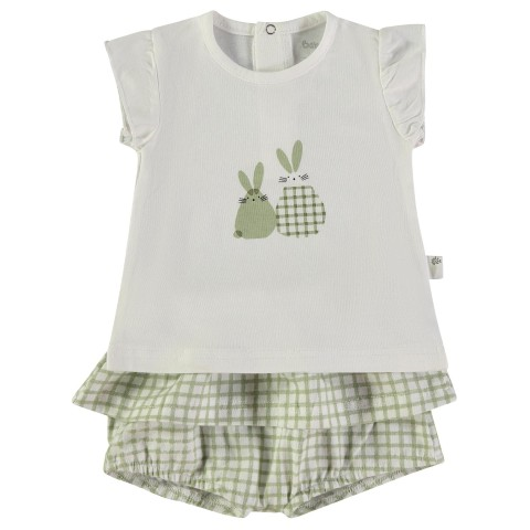 Conjunto niña compuesto camiseta manga corta y braga pañal con volante en vichy verde 95%ALGODON 5%ELASTANO