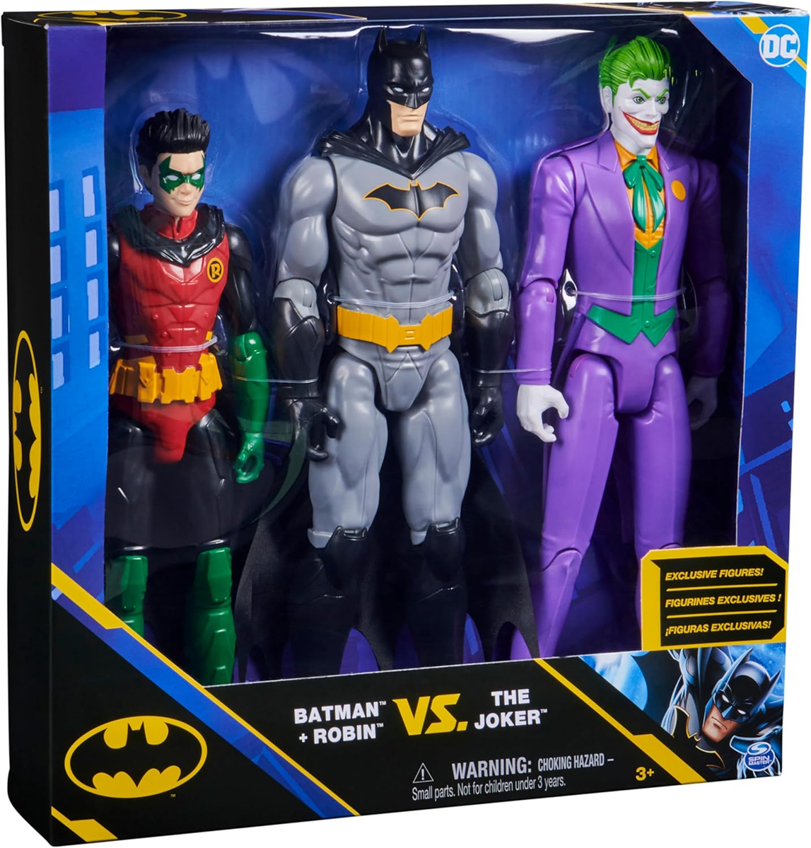 DC COMICS - Pack Figura Batman Y Robin contra Joker: Figuras de Acción de 30 cm