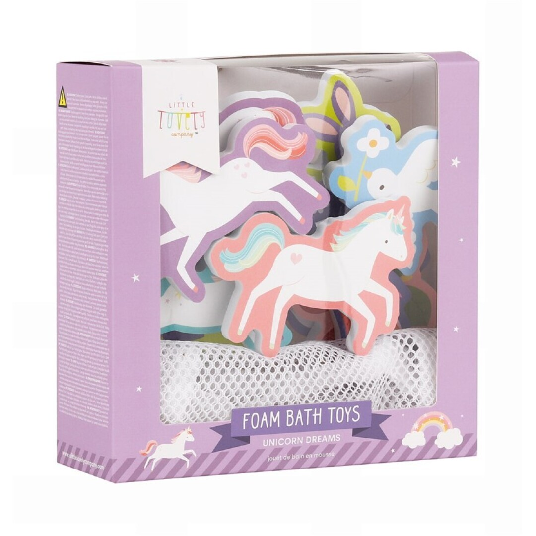 Disfruta de un baño sin límites con estos juguetes de espuma de unicornio. Las 14 piezas se adhieren a la pared o los azulejos de la ducha cuando están mojadas y se guardan perfectamente en la red incluida después de usarlas. La red se puede colgar con las ventosas. Las piezas no absorben agua, lo que facilita su limpieza y secado para evitar la formación de moho. 16 X 16 CM