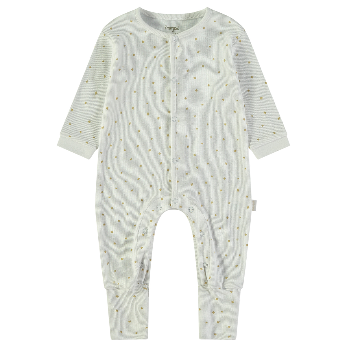 Pelele de bebé en tejido de algodón estampado con apertura delantera de corchetes, de manga larga.