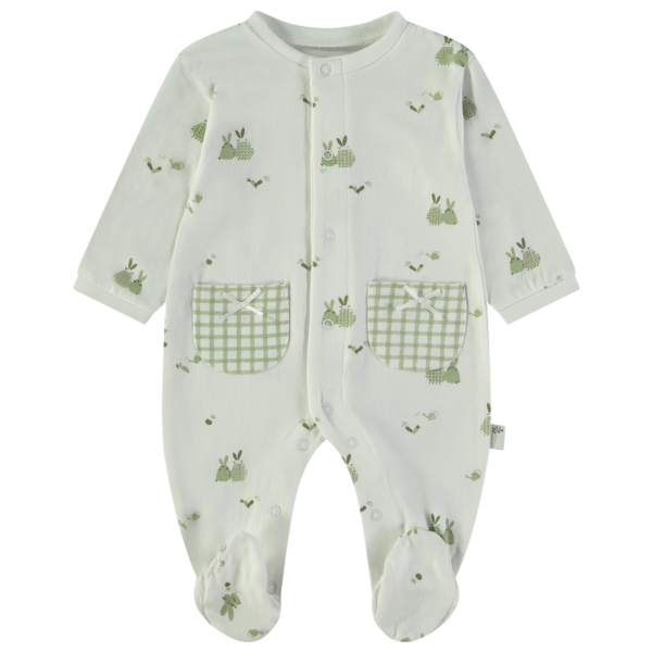 Pijama pelele de una sola pieza en algodón, especialmente diseñado para la temporada de verano, ofreciendo suavidad, ligereza y máxima comodidad para el bebé. Su tejido transpirable es ideal para el uso diario, garantizando bienestar durante el descanso y el juego