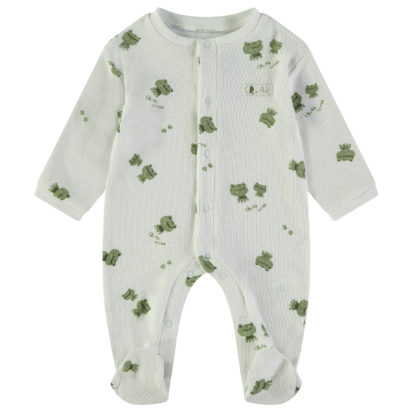 Pelele de bebé en tejido de algodón estampado con apertura delantera de corchetes, de manga larga.