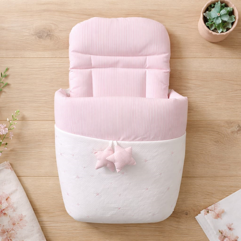 Saco para capazo Universal formato nido con cremallera de Rosy Fuentes Apto para todo tipo de cochecitos de bebé • Abertura de cremallera completa a ambos lados • Lavable a lavadora