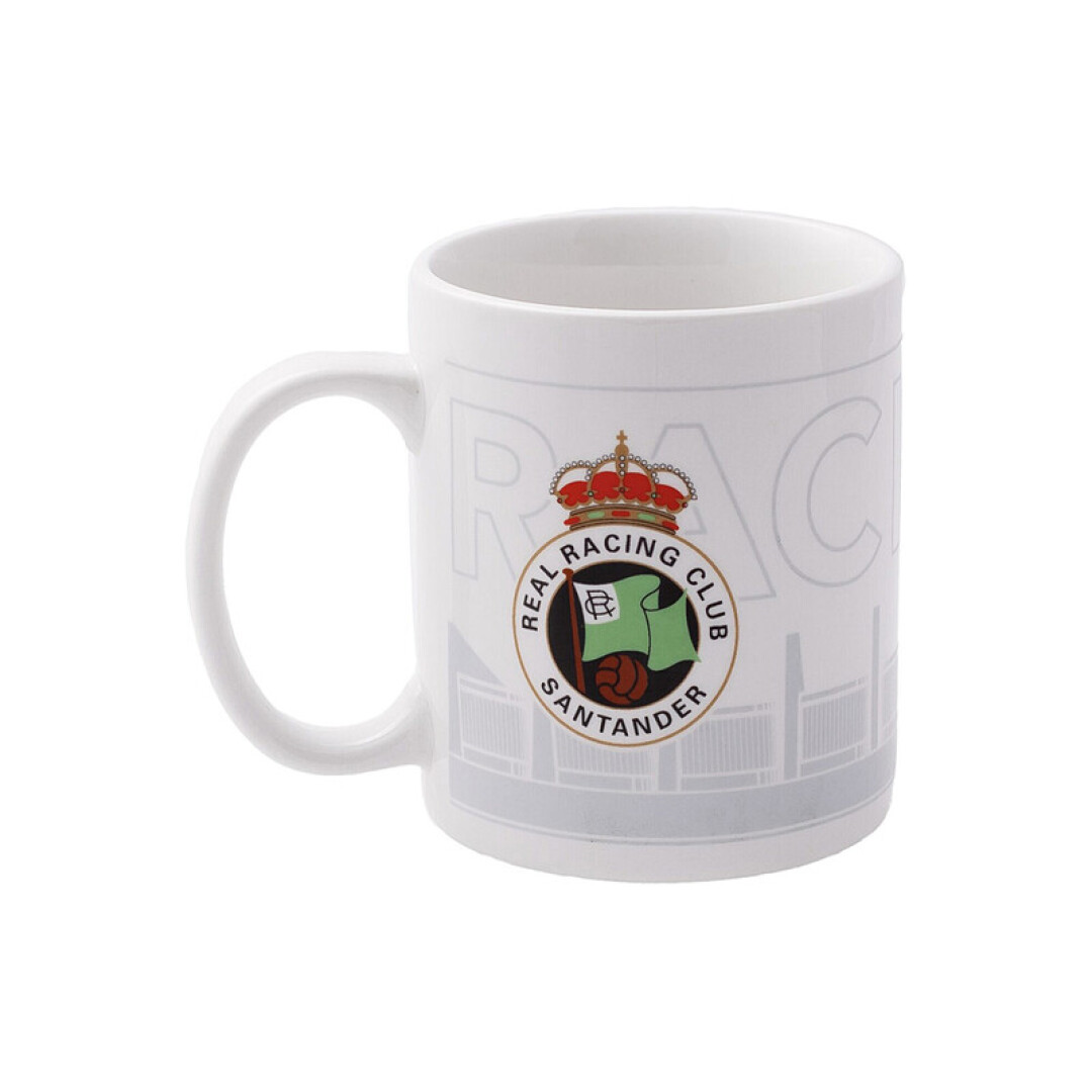 Sublimación en superficie con escudo monocolor frontal del Real Racing Club y fondo silueteado de el Sardinero en un color gris claro.