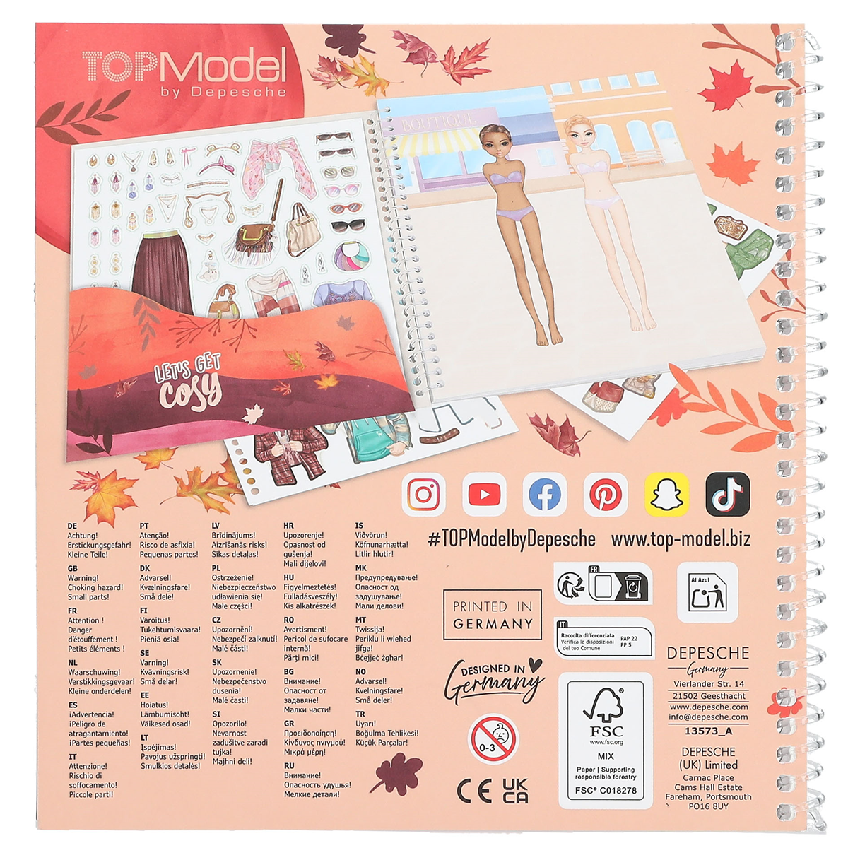 Elegante y cálida: en Cosy TOPModel Dress me up, podrás crear conjuntos TOPModel de ensueño para la temporada de invierno con las pegatinas de ropa y accesorios de 11 hojas de pegatinas en 24 páginas encuadernadas en espiral.