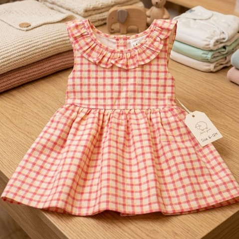 VESTIDO C/ BRAGA VICHY ROSA 6M
